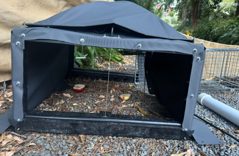 The Cacophony Project designed this trap because they observed with their thermal cameras that other traps have a very low interaction rate: typically for every 100 predators that is seen near a trap less than one will interact with it.