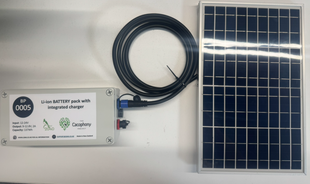 This waterproof solar battery pack is designed to work with the DOC AI Cam and Trap. It can also be used to power any other device that takes 12V.